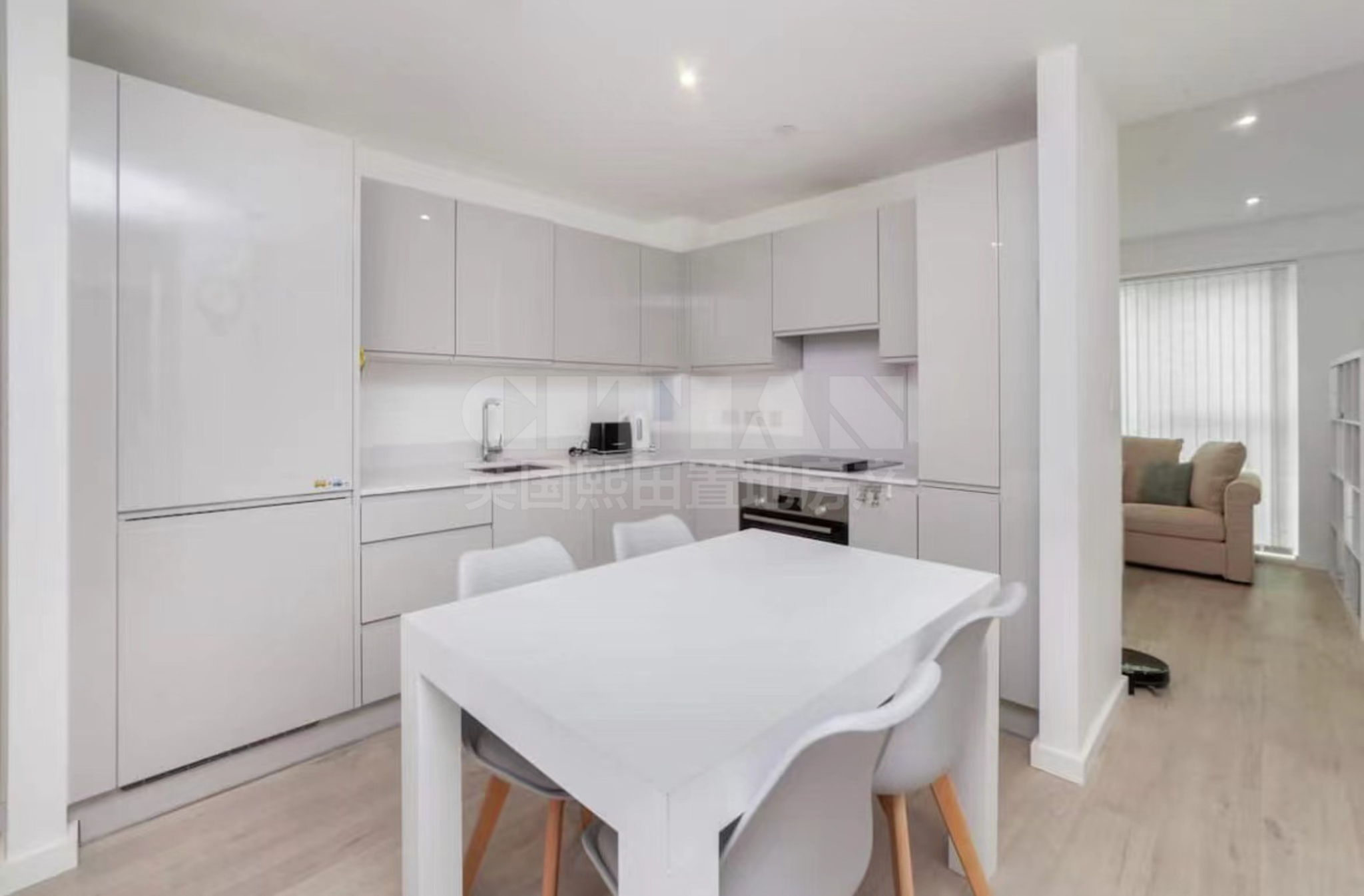 There is a stylish interior flooded with natural light through the vast floor-to-ceiling windows. A spacious open plan living area encompasses a high gloss fitted kitchen, then leads out onto a generous enclosed private balcony, making the perfect spot for entertaining. There are two generous double bedrooms, with the principal boasting fitted wardrobes and an en suite, in addition to the main bathroom. There is secure fob entry, a lift servicing all floors, plus there is no onward chain.