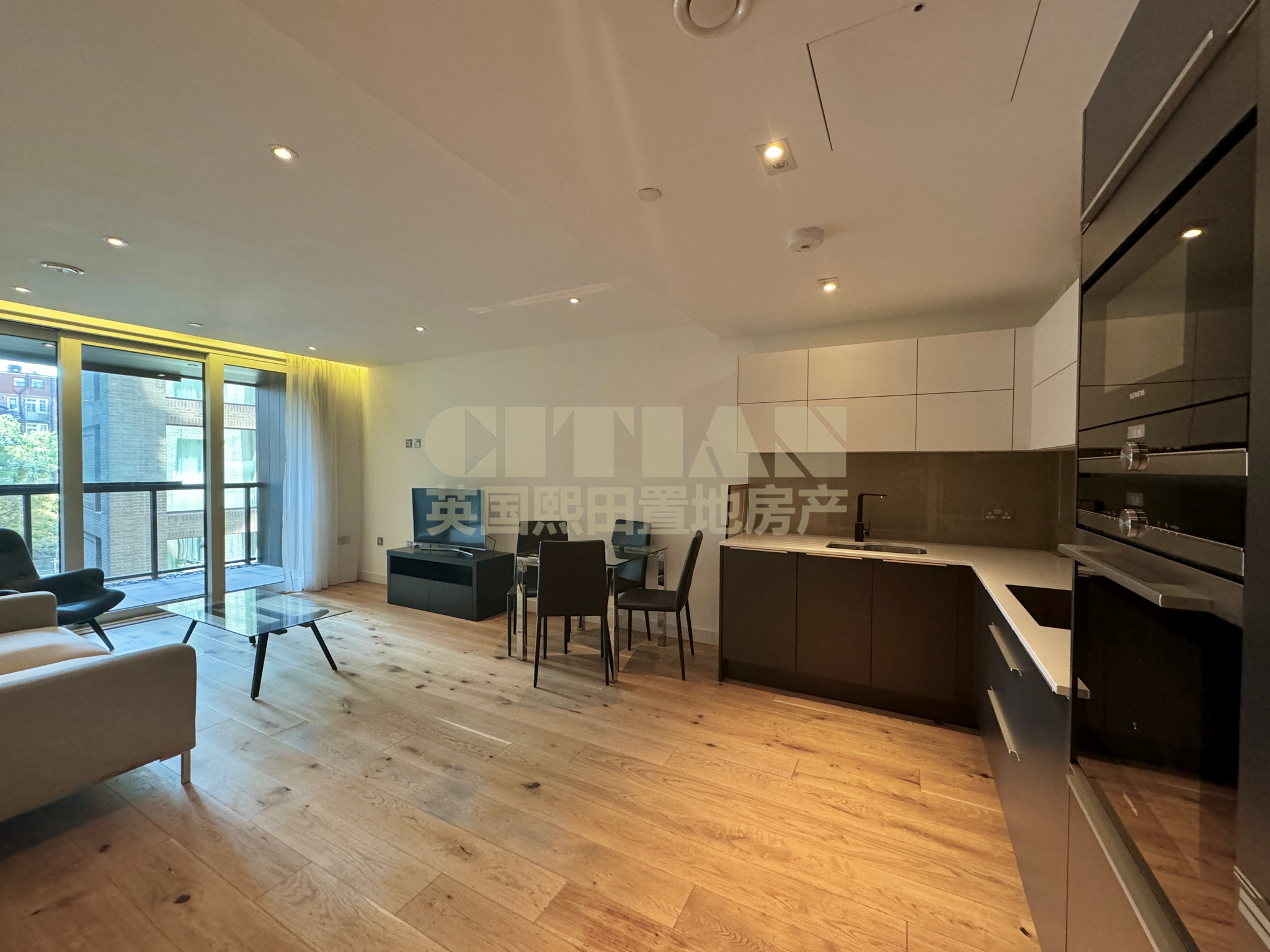 This stunning apartment comprises a large open plan reception room, a bedroom with ample storage and a family bathroom. It also benefits from a winter garden and floor to ceiling windows.